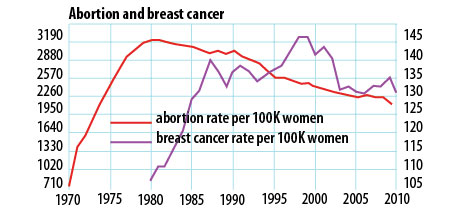 But could the professionals be wrong? Breast cancer has become the leading cause of death among women ages 20 to 59. The number of cases has increased exponentially and appears to correlate in some way with changes in the number of abortions since legalization in the early 1970s (See graph. Note: Breast cancer cells begin to develop about 10 years prior to detectability.). So why are reputable medical organizations consistently refuting any connection between abortion and breast cancer?